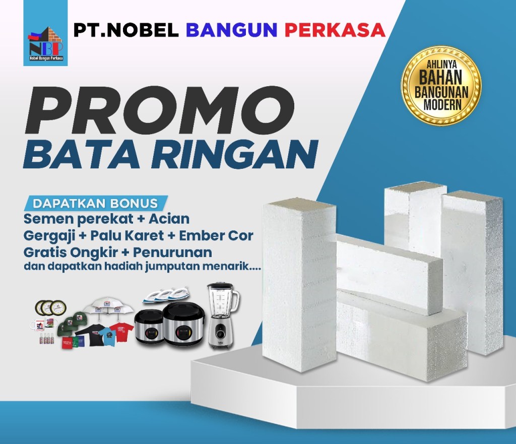 Setiap pembelian material bata ringan di PT Nobel Bangun Perkasa, Anda berhak mendapatkan bonus sebagai berikut